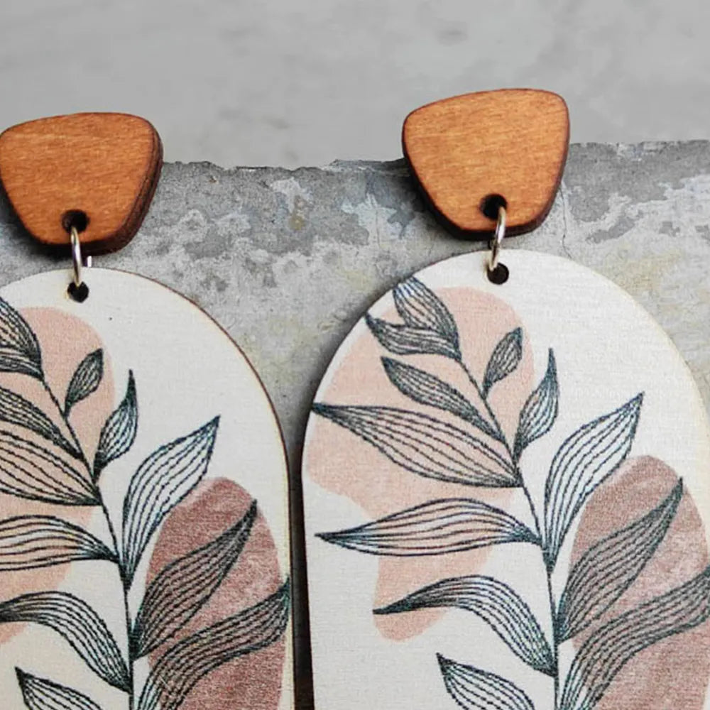 Geometrical Shape Wooden Drop Earrings