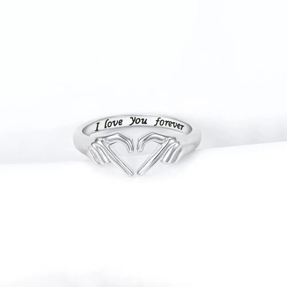 Hand Heart Shape 925 Sterling Silver Open Ring