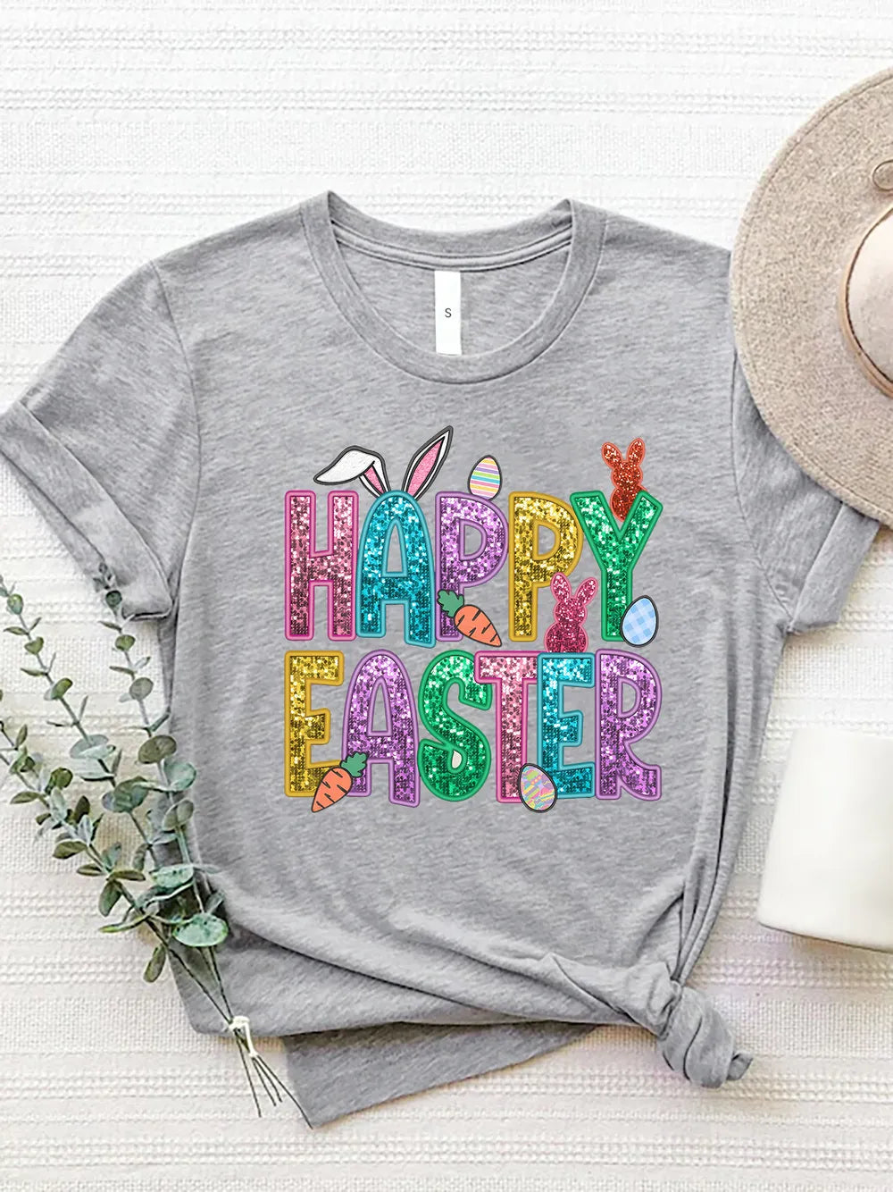 HAPPY EASTER Round Neck Short Sleeve T-Shirt