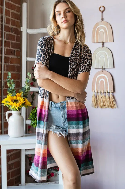 Heimish Full Size Animal Leopard and Stripe Open Cardigan Plus...