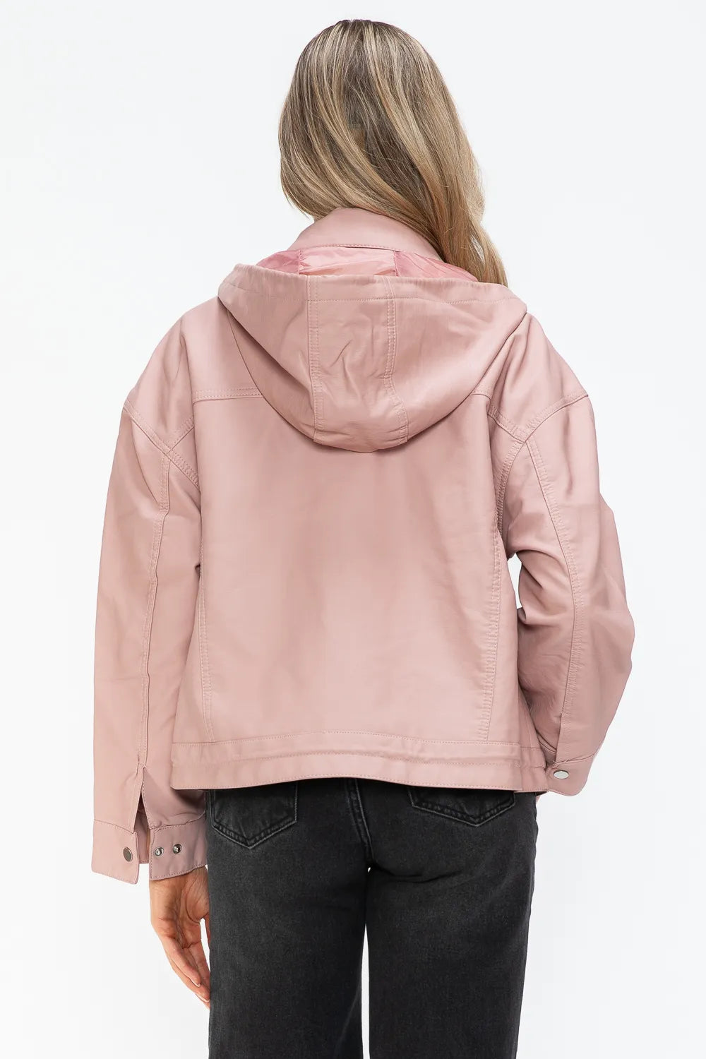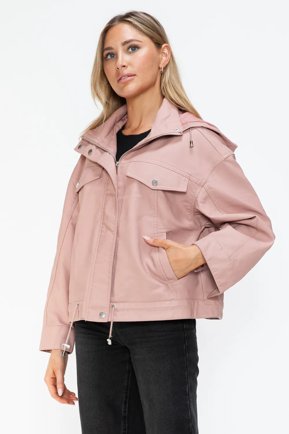 How Dare U Drawstring Hem PU Leather Zip Up Jacket