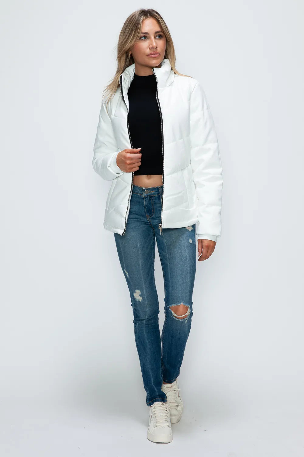 How Dare U Pocketed Zip Up Puffer Jacket with Removable...