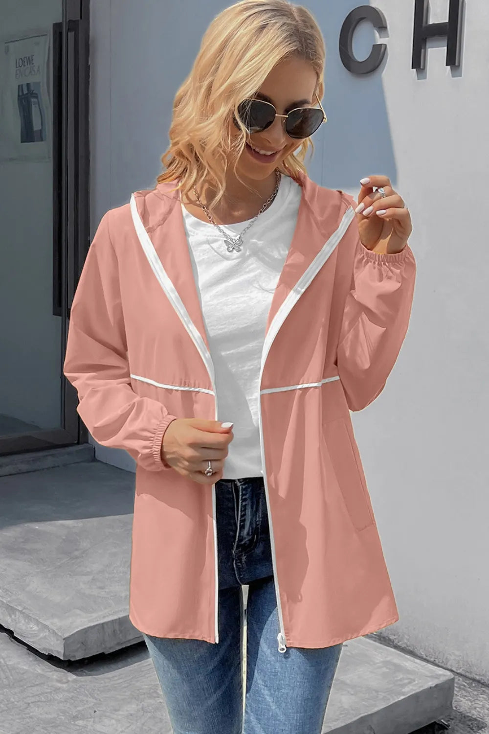 Ivy Lane Zip Up Long Sleeve Hooded Watertight Jacket
