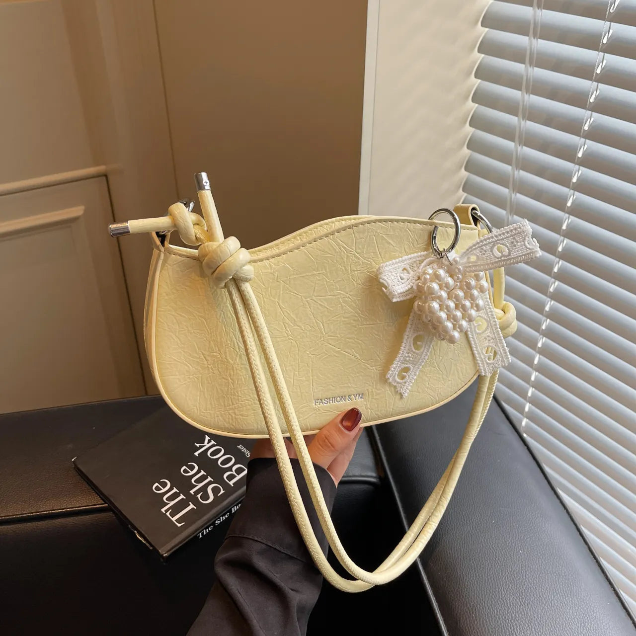 Leather Shoulder Bag with Pearl Detail