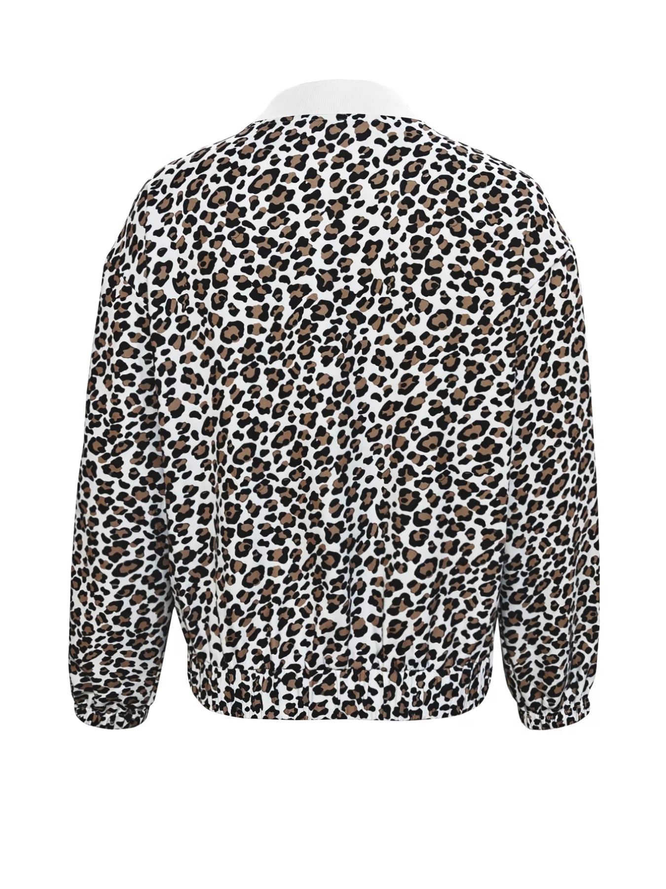 Leopard Zip Up Bomber Jacket with Contrast Side Stripes