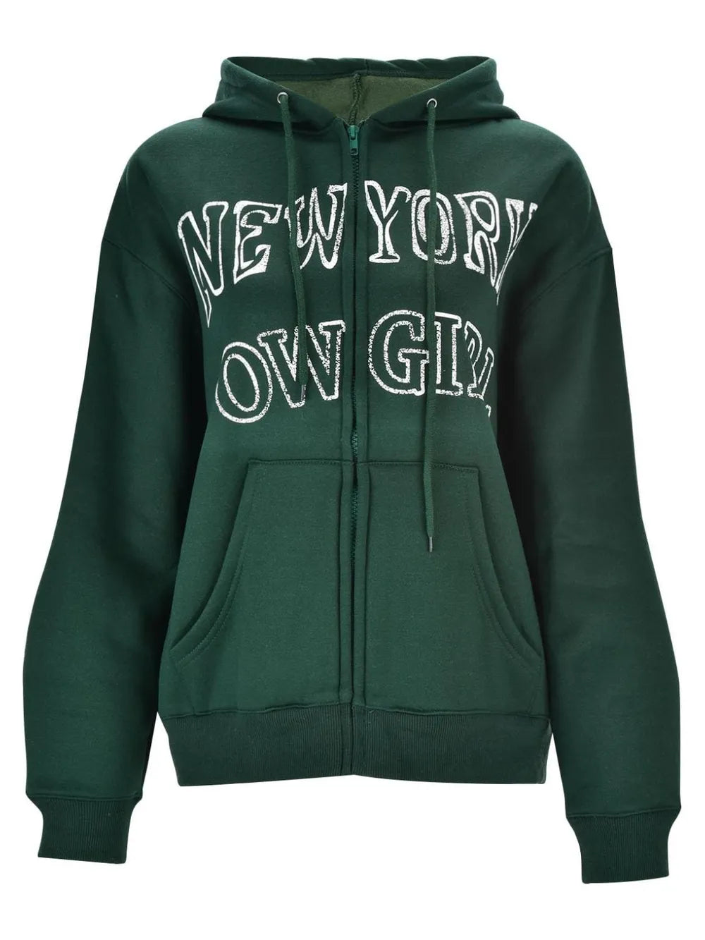 Letter Graphic Zip Up Long Sleeve Hooded Jacket