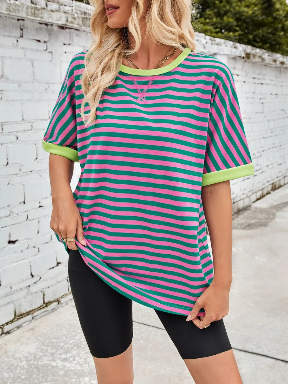 Lovelet Striped Round Neck Half Sleeve T-Shirt