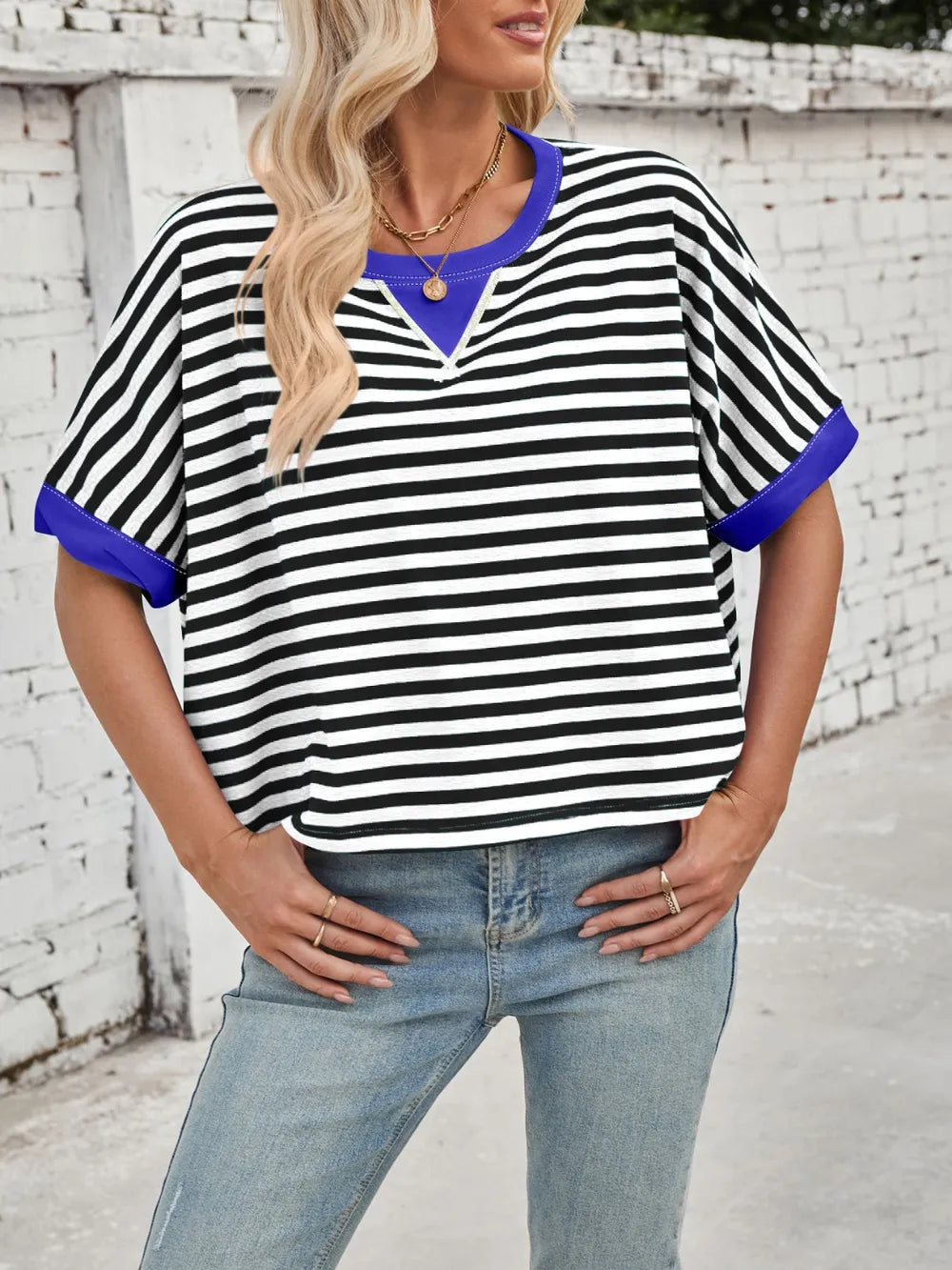 Lovelet Striped Round Neck Short Sleeve T-Shirt