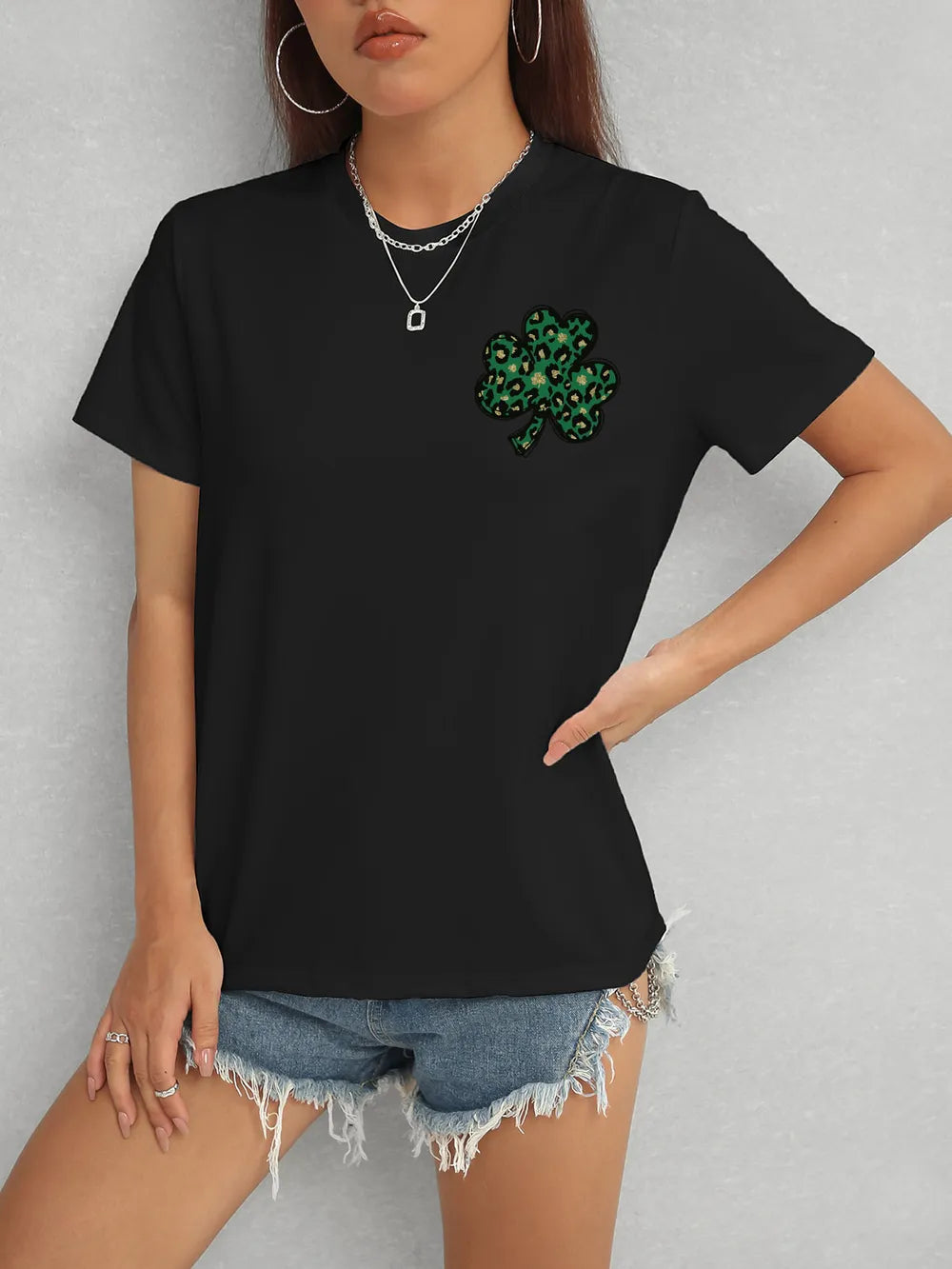 Lucky Clover Round Neck Short Sleeve T-Shirt