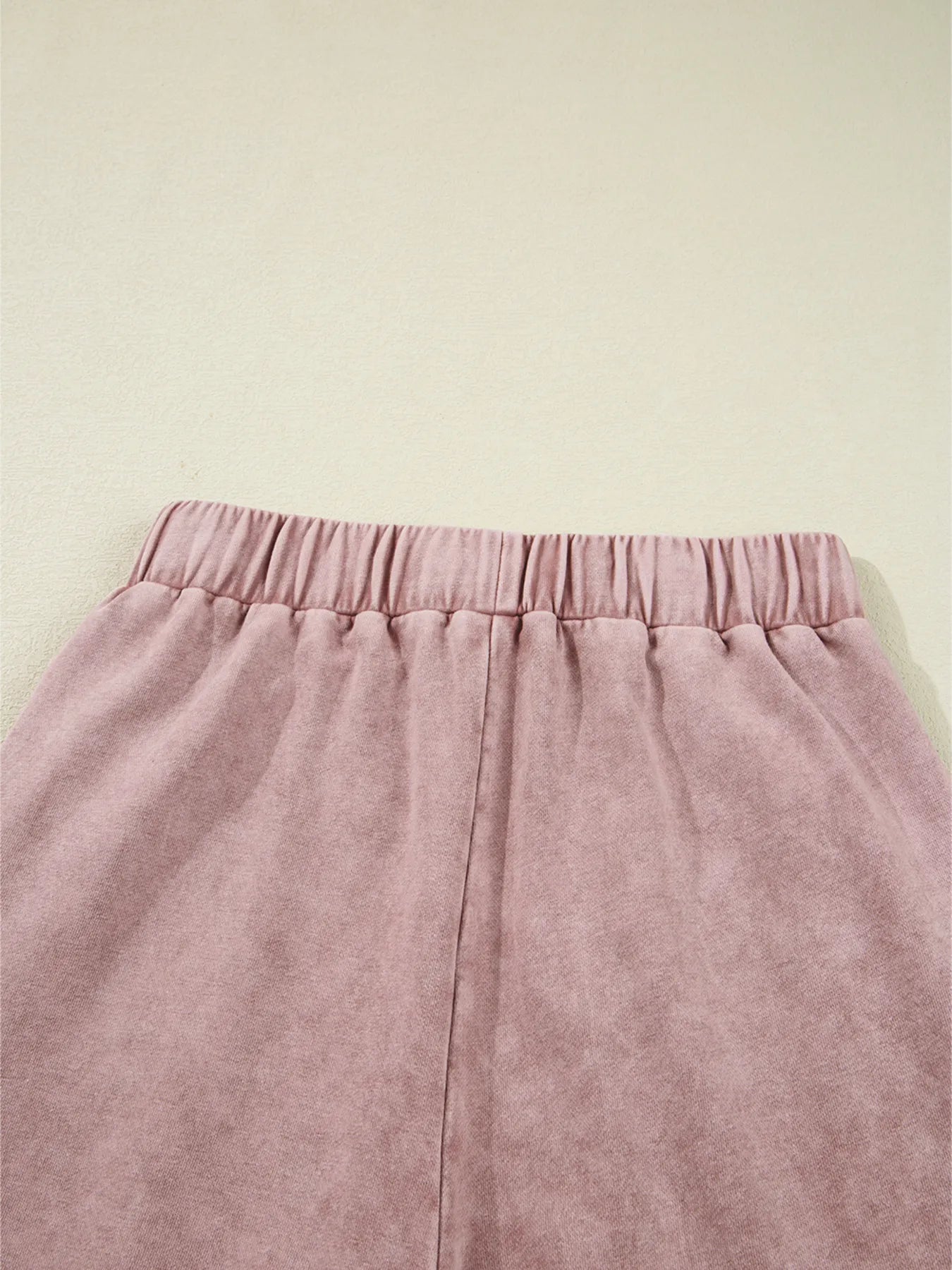 Mineral Wash Tiered Wide Leg Patchwork Drawstring Pants