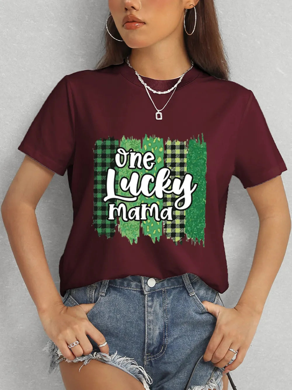 ONE LUCKY MAMA Round Neck T-Shirt