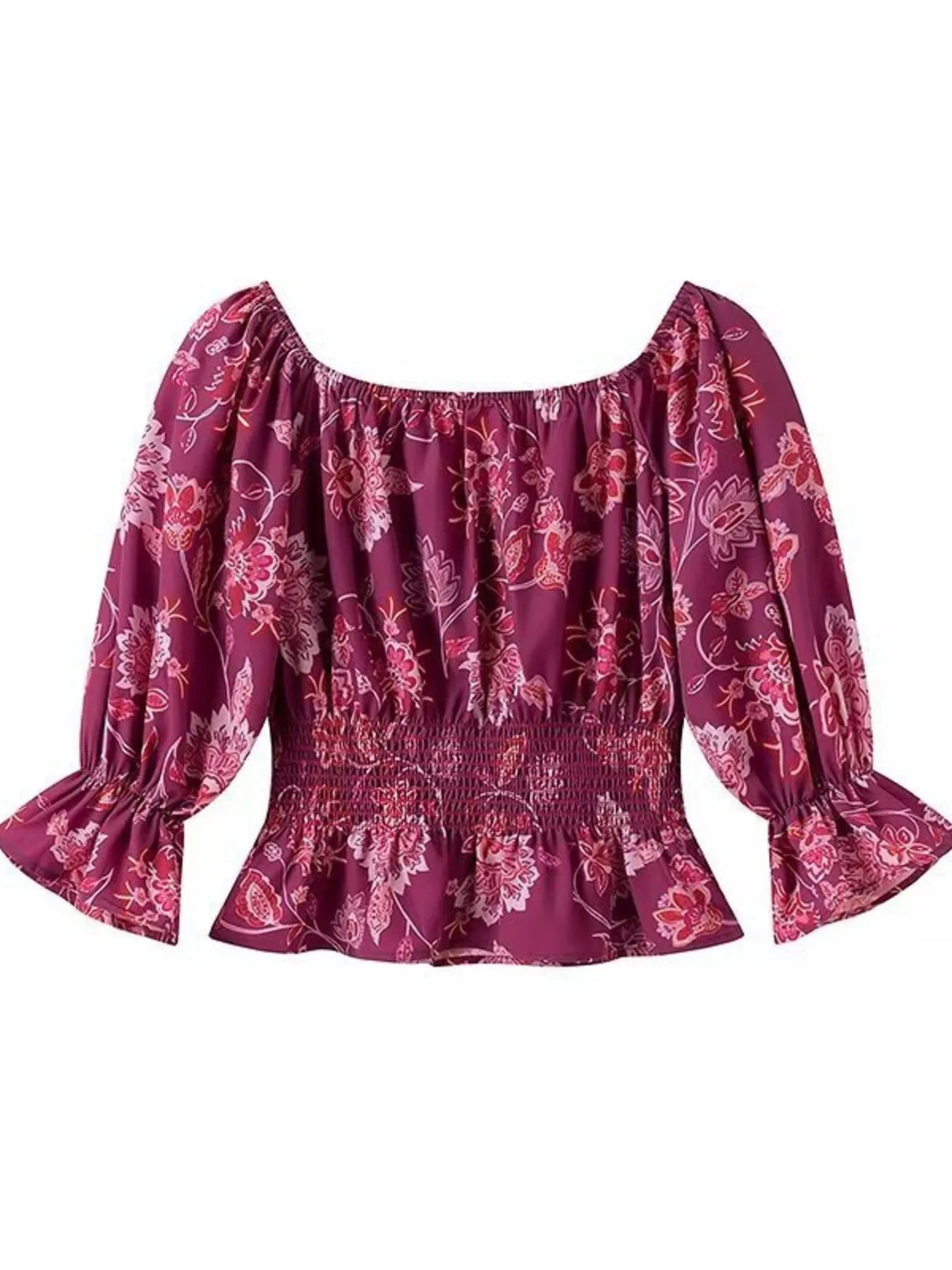 Printed Flounce Sleeve Top and Slit Skirt Set
