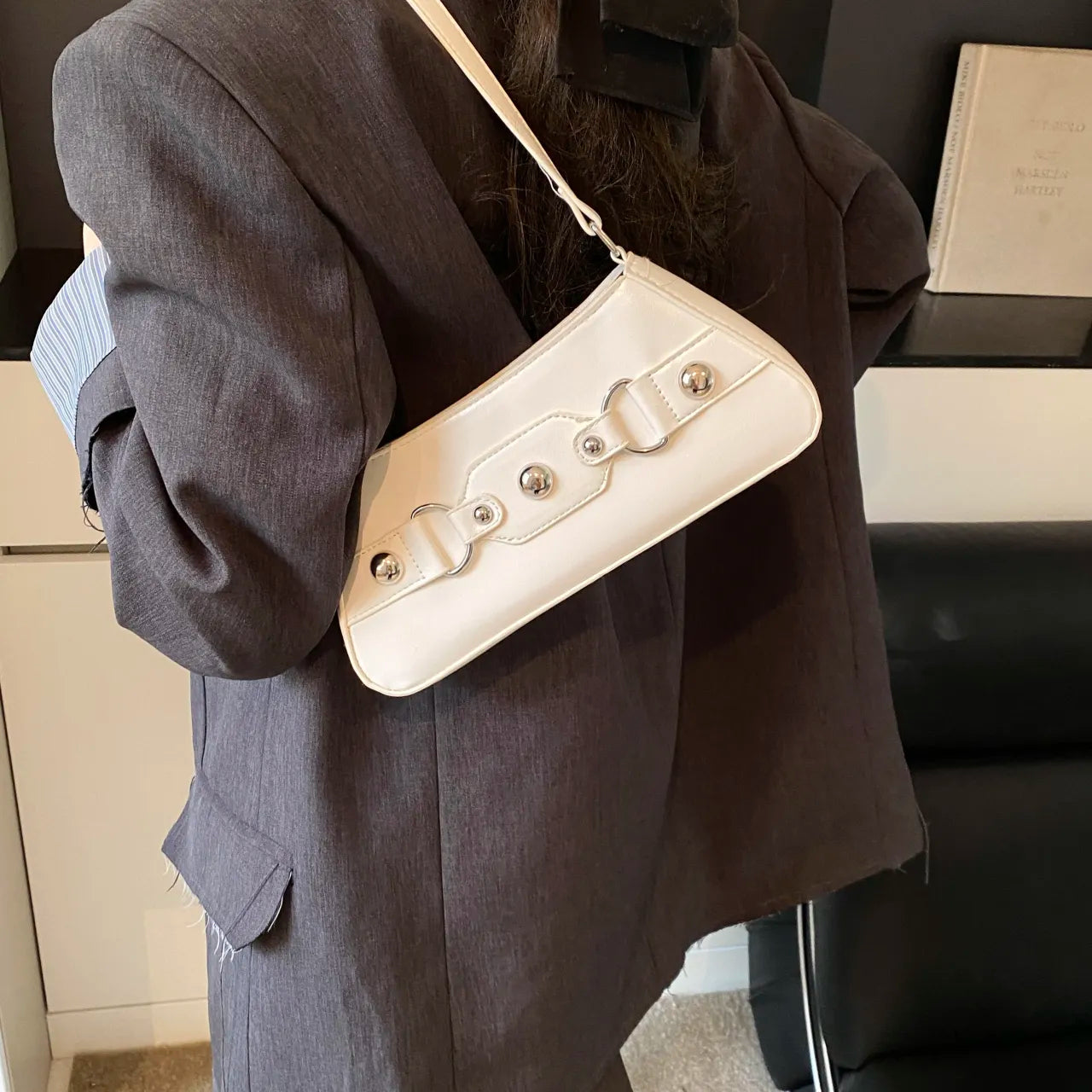 PU Leather Shoulder Bag with Buckle Details
