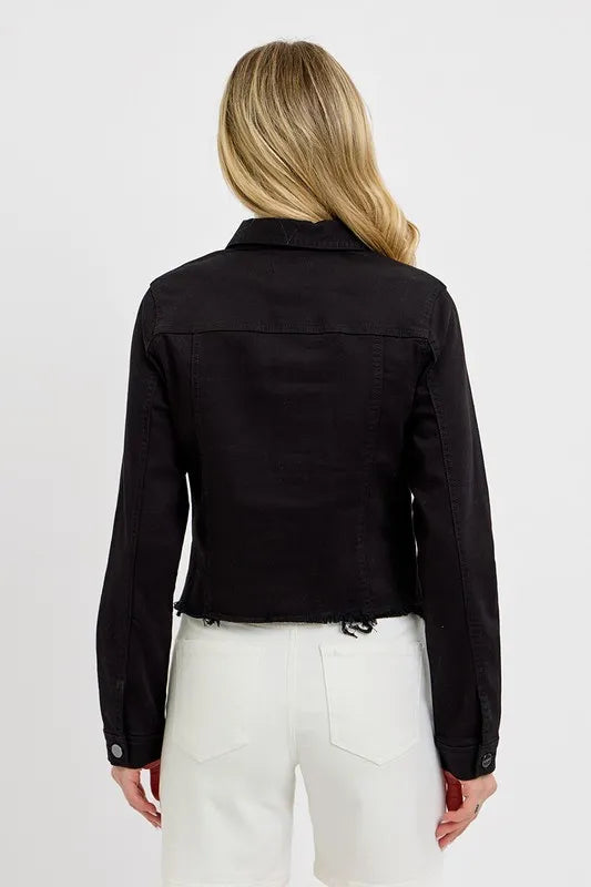 RISEN Full Size Irregular Fray Hem Button Up Denim Jacket...