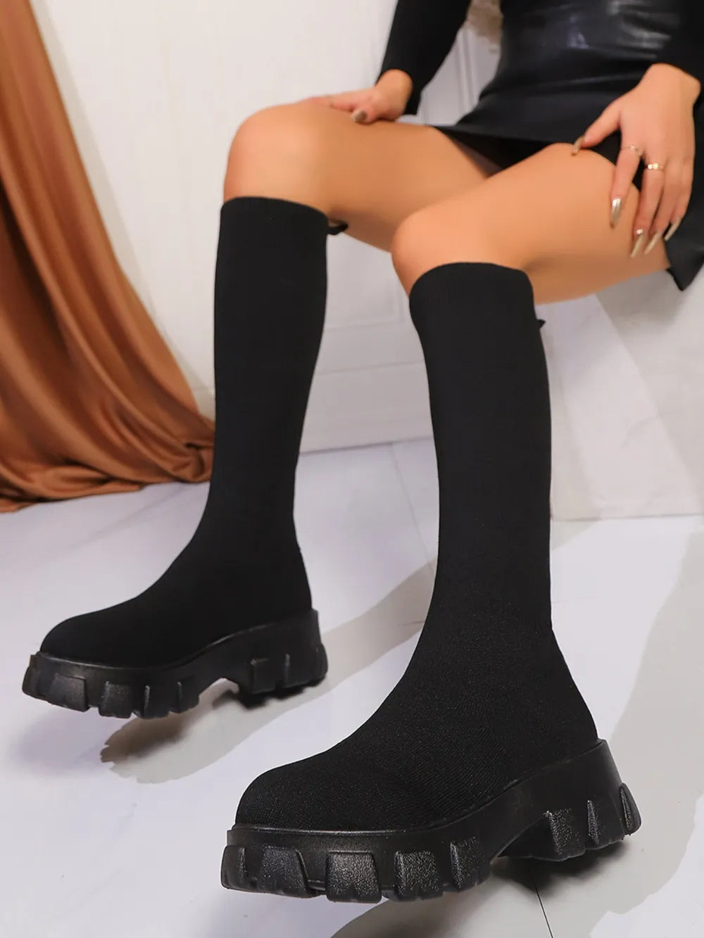 Round Toe Platform Woven Boots