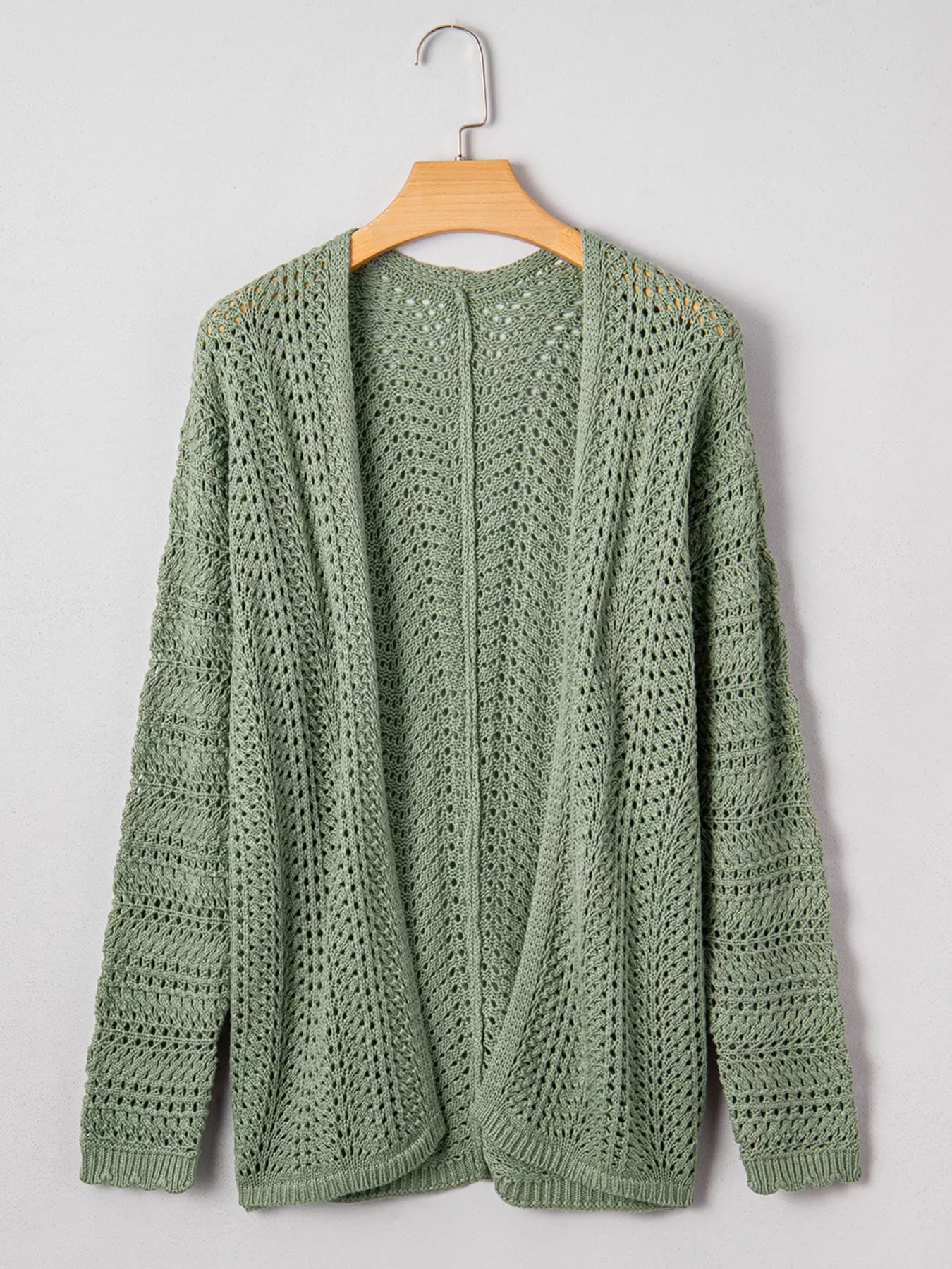 Scalloped Edge Eyelet Knit Batwing Sleeve Cardigan