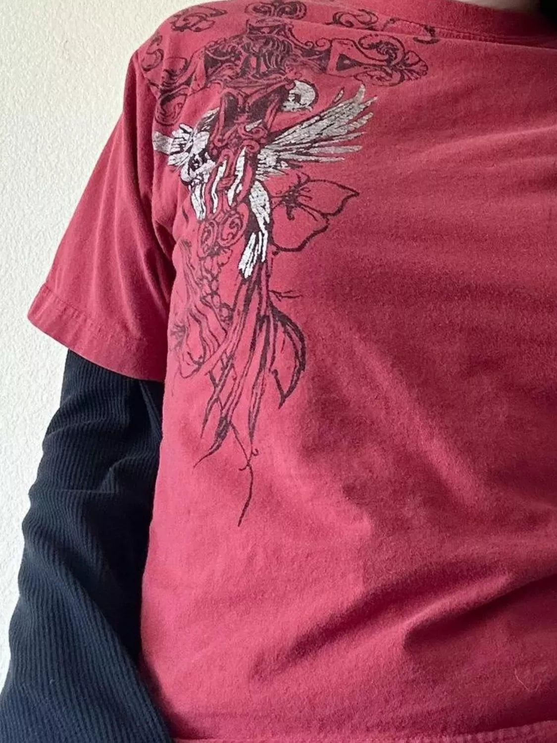 Skull Graphic Round Neck Long Sleeve T-Shirt