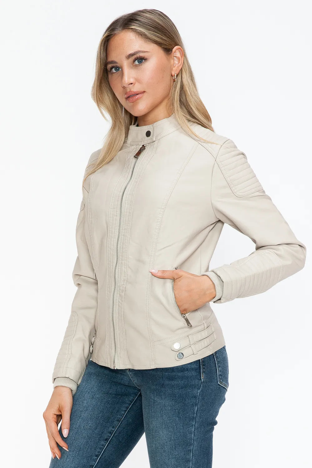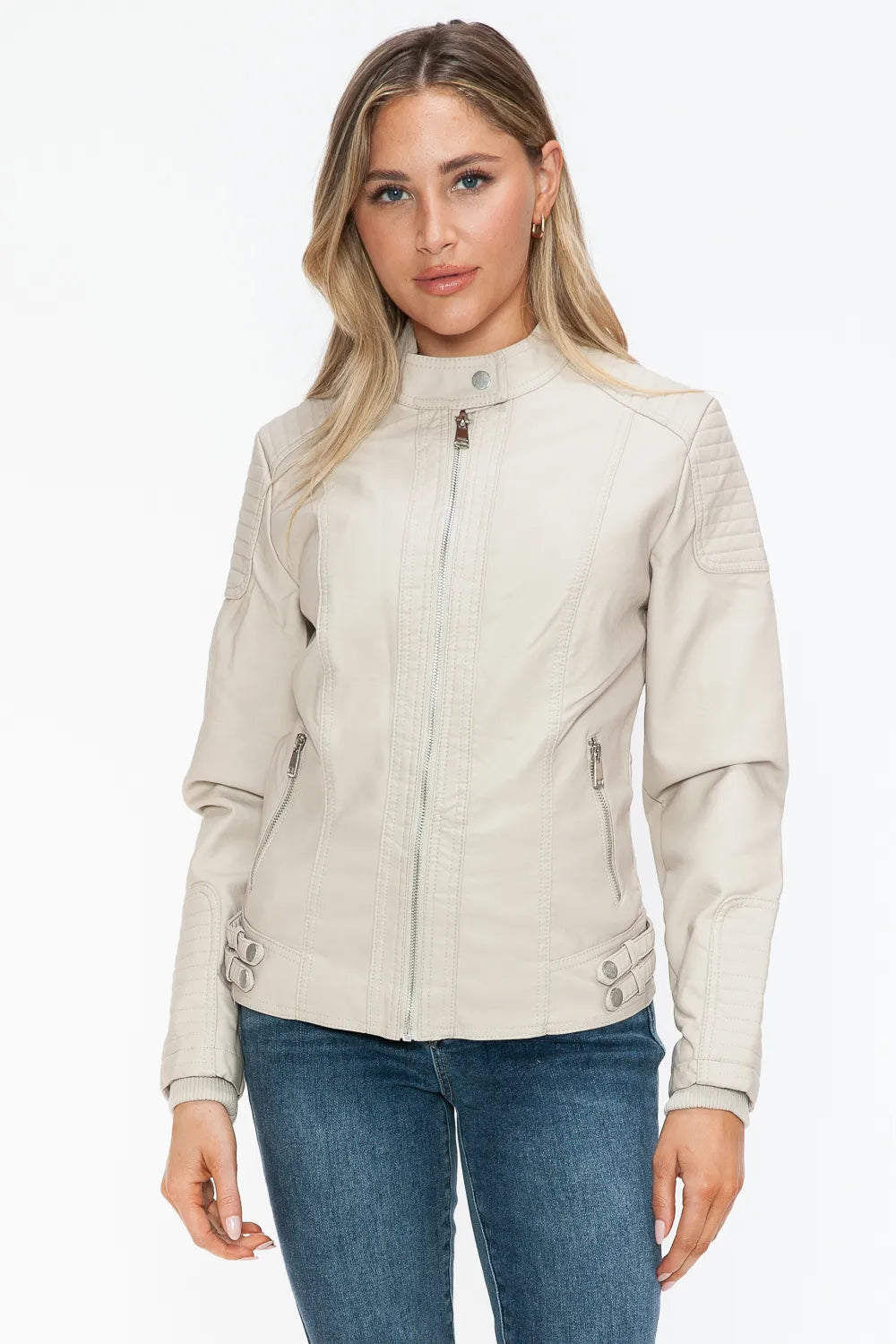Snobbish Faux Leather Biker Jacket with Side Zip Pockets
