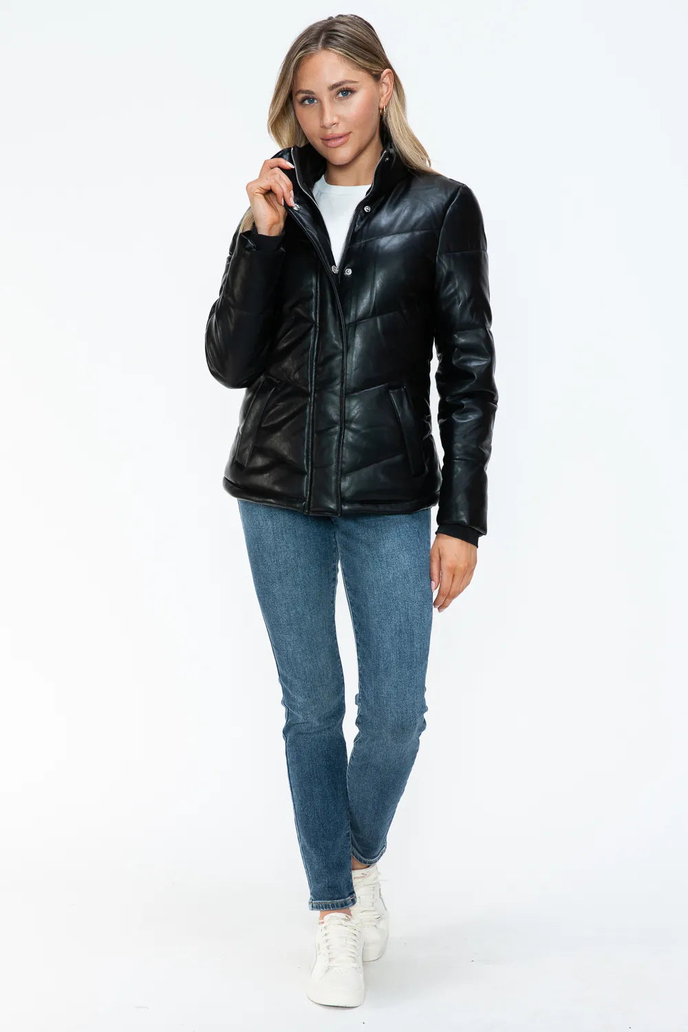 Snobbish Pocketed Zip Up Turtleneck Puffer Jacket