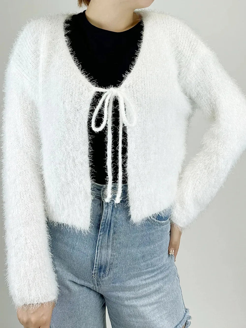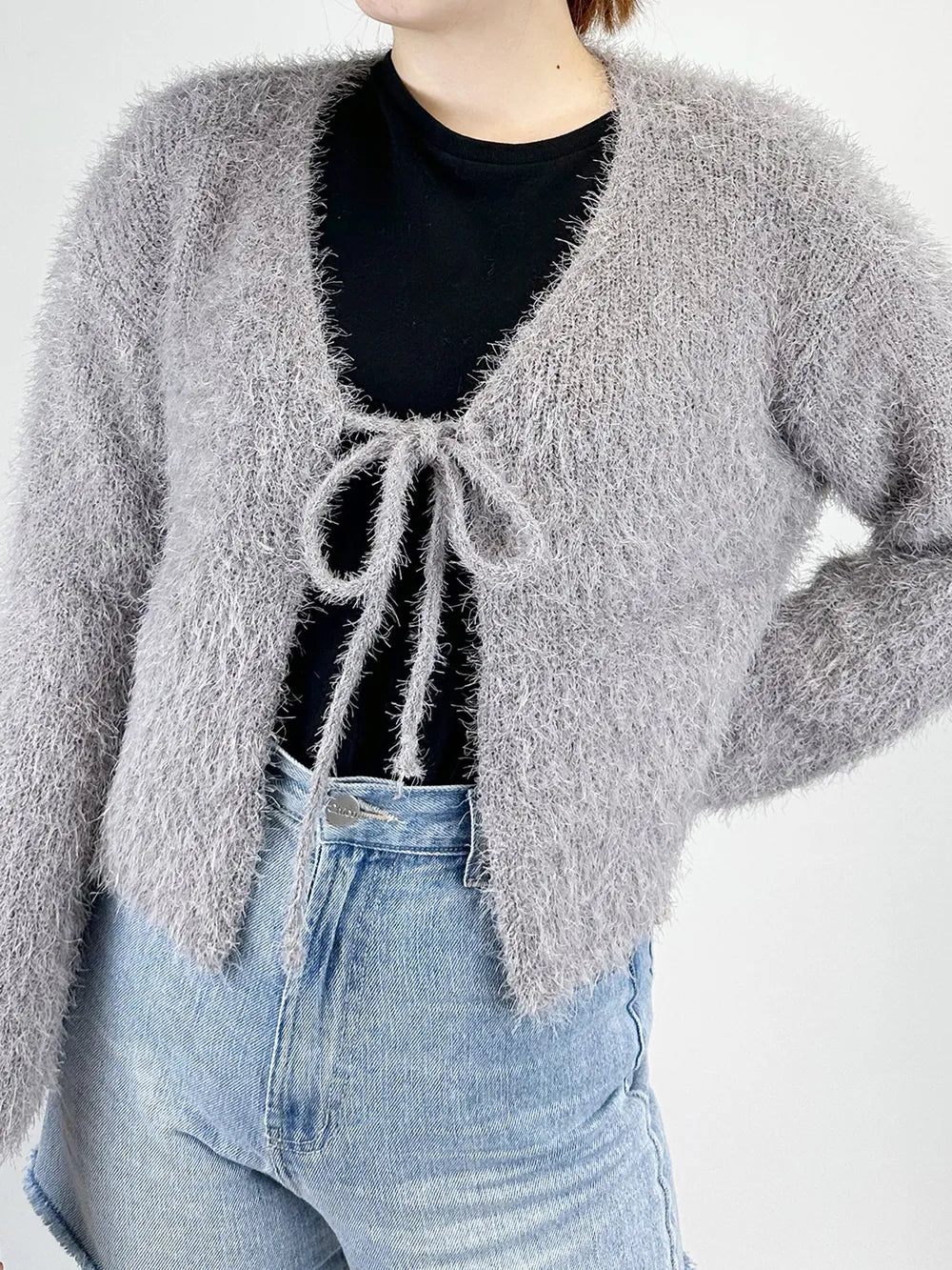 Tied Open Front Dropped Shoulder Cardigan