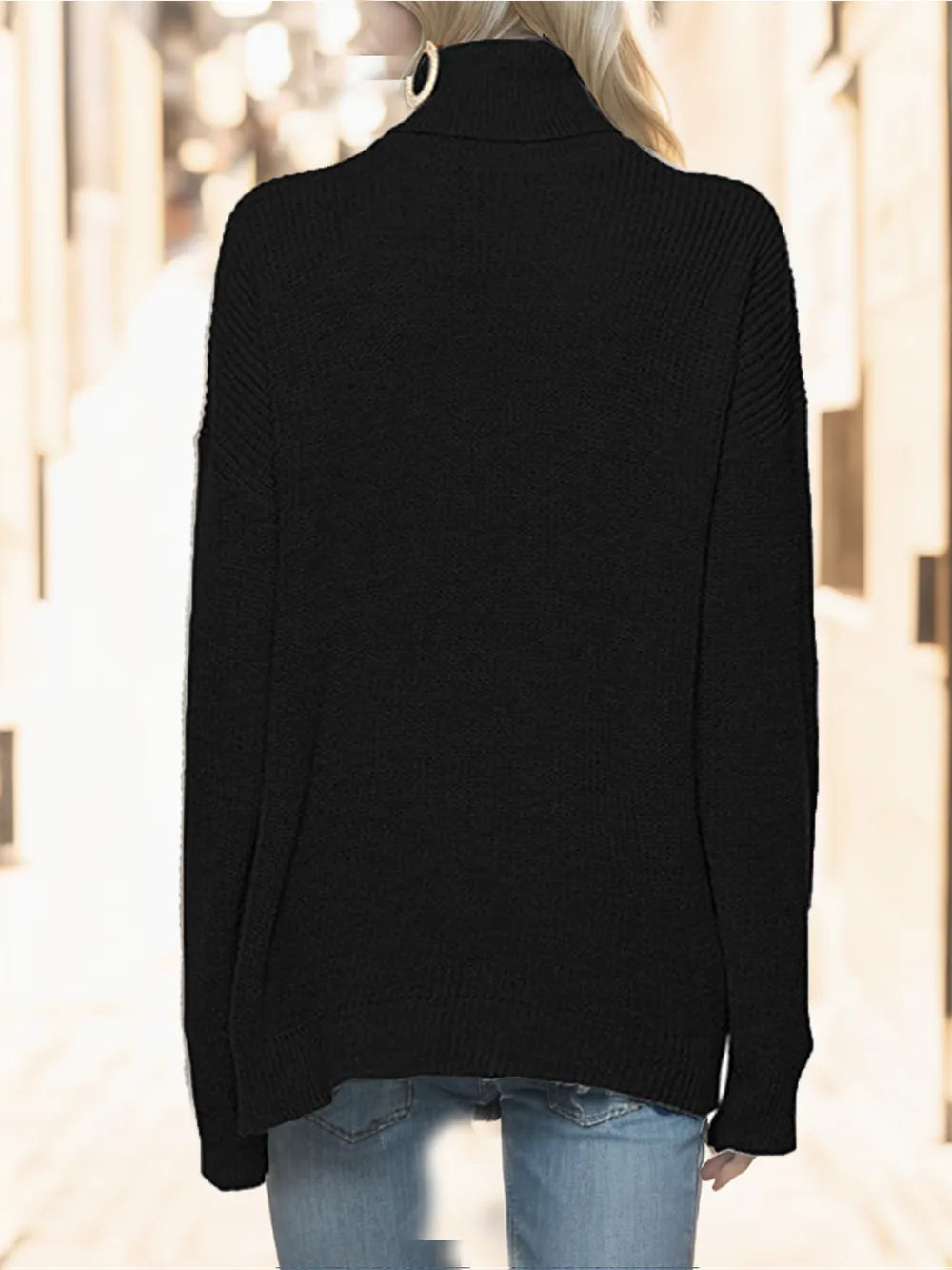 Turtleneck Drop Shoulder Long Sleeve Sweater