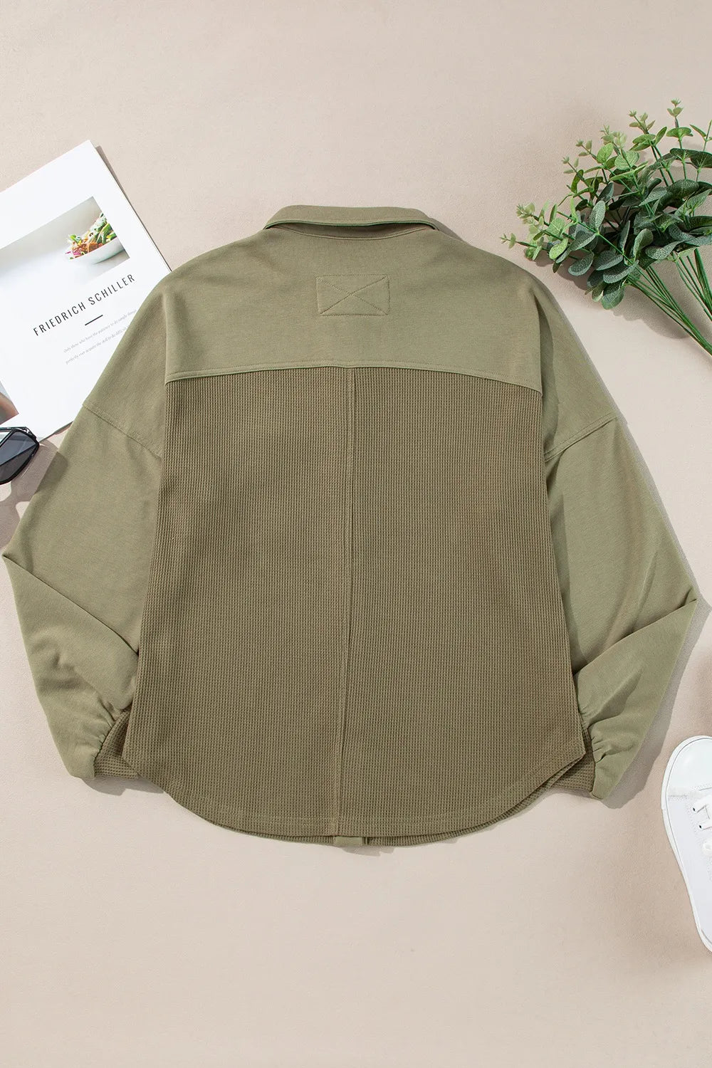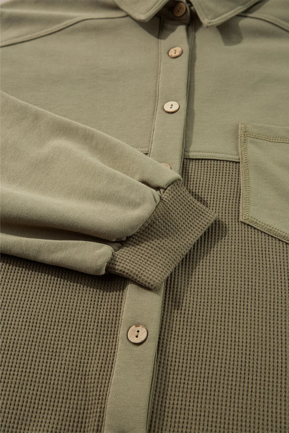 Waffle-Knit Collared Neck Long Sleeve Shacket